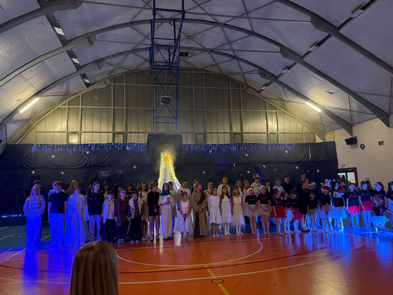 W hali GOSiR w Ujeździe zaprezentowano jasełka w wykonaniu uczniów miejscowej Szkoły Podstawowej im. Obrońców Westerplatte i zespołu „Ale o co chodzi”.