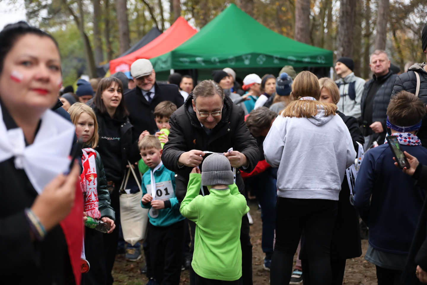Ponad 400 uczestników wzięło udział w biegach na 5 i 10 km, wyścigu rowerowym i spacerze w lesie na terenie Nadleśnictwa Grotniki. Powiewały biało-czerwone flagi, a przed rozpoczęciem biegu wszyscy zgromadzeni odśpiewali hymn narodowy.